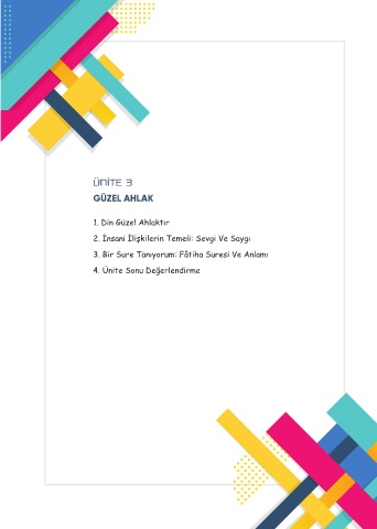 ÜNİTE 3 GÜZEL AHLAK 1. Din Güzel Ahlaktır 2. İnsani İlişkilerin Temeli: Sevgi Ve Saygı 3. Bir Sure Tanıyorum: Fâtiha Suresi Ve Anlamı 4. Ünite Sonu Değerlendirme