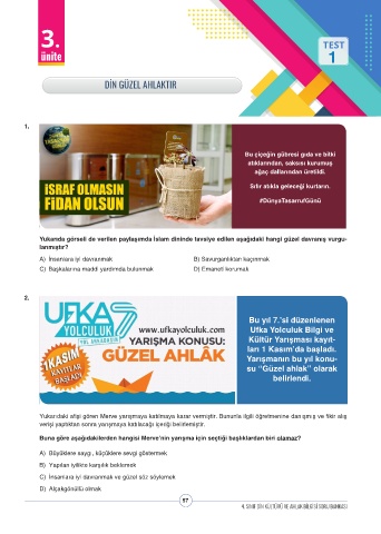 4. SINIF DİN KÜLTÜRÜ VE AHLAK BİLGİSİ SORU BANKASI