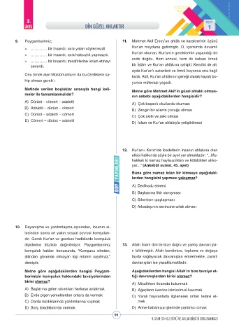 9. Peygamberimiz; 11. Mehmet Akif Ersoy’un ahlâk ve karakterinin özünü
