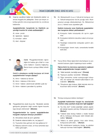 13. İnsanlar sevdikleri kişiler için fedakarlık ederler ve 16. Hz. Muhammed’in (s.a.v.) Yahudi bir komşusu var-