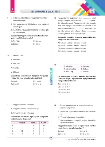 A) I II III Peygamberimizin ailesi ile ilgili olarak verilen