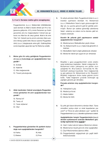 TEST HZ. MUHAMMED’IN (S.A.V.) MEKKE VE MEDINE YILLARI 4.