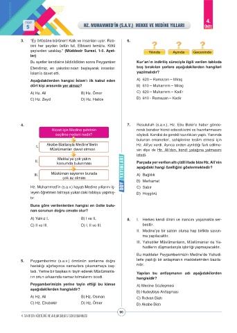 TEST HZ. MUHAMMED’IN (S.A.V.) MEKKE VE MEDINE YILLARI 4.