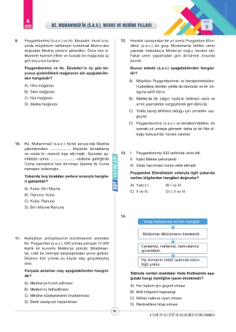 9. Peygamberimiz (s.a.v.) ve Hz. Ebubekir, hicret sıra- 12. Hendek savaşından bir yıl sonra Peygamber Efen-