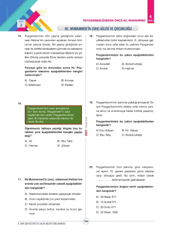 Parçaya göre bu durumdan sonra Hz. Pey- C) Amine D) Halime