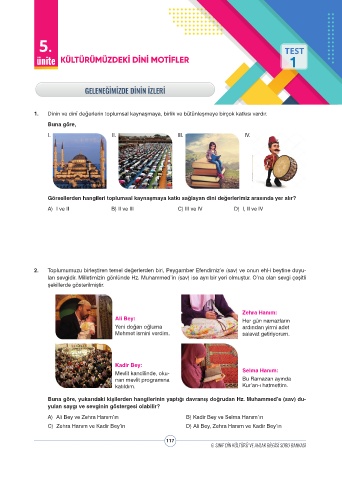 1. Dinin ve dinî değerlerin toplumsal kaynaşmaya, birlik ve bütünleşmeye birçok katkısı vardır.