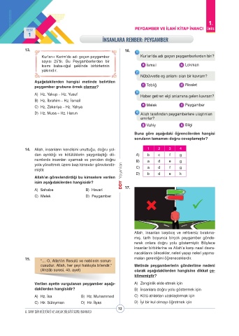 TEST PEYGAMBER VE İLAHİ KİTAP İNANCI ÜNİTE