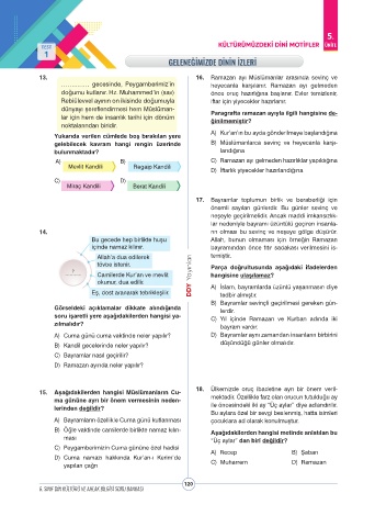 soru işaretli yere aşağıdakilerden hangisi ya- C) Yıl içinde Ramazan ve Kurban adında iki
