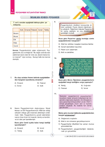 ÜNİTE PEYGAMBER VE İLAHİ KİTAP İNANCI TEST