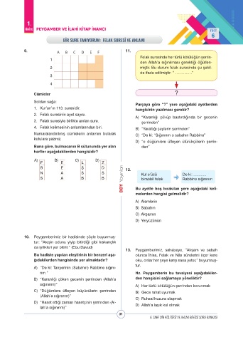 ÜNİTE PEYGAMBER VE İLAHİ KİTAP İNANCI TEST