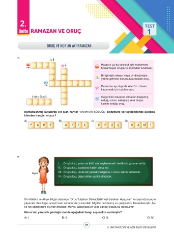 Numaralanmış kutularda yer alan harfler “ANAHTAR SÖZCÜK” bölümüne yerleştirildiğinde aşağıda-