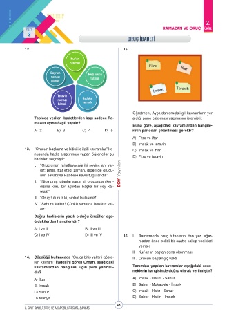 13. “Orucun başlama ve bitişi ile ilgili kavramlar” ko- C) İmsak ve iftar