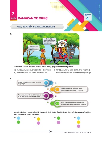 Oruç ibadetinin insana sağladığı faydalarla ilgili doğru örneklerin yazılı olduğu kutular aşağıdakiler-