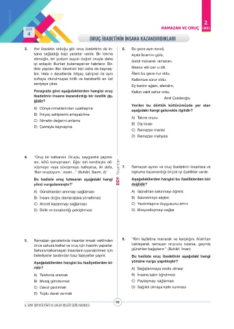 TEST RAMAZAN VE ORUÇ ÜNİTE