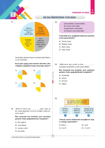6. SINIF DİN KÜLTÜRÜ VE AHLAK BİLGİSİ SORU BANKASI