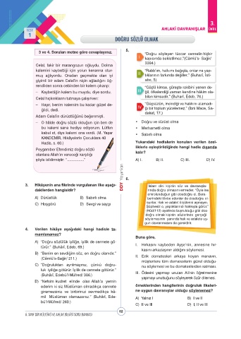 3 ve 4. Soruları metne göre cevaplayınız. 5. “Doğru söyleyen tüccar cennetin hiçbir