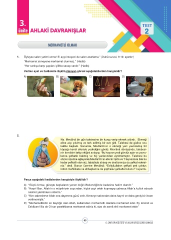 Verilen ayet ve hadislerle ilişkili olmayan görsel aşağıdakilerden hangisidir?