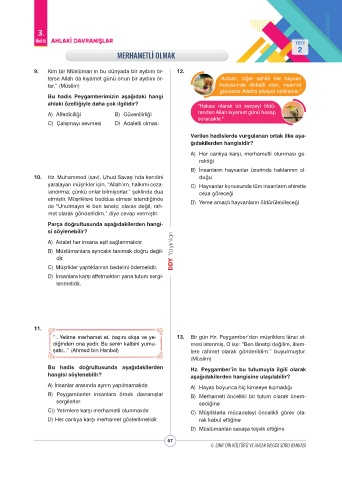 B) Peygamberler insanlara örnek davranışlar B) Merhameti öncelikli bir tutum olarak önem-
