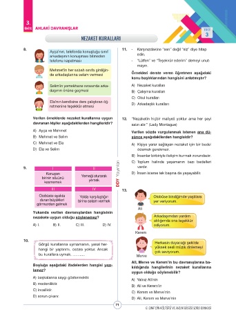 ÜNİTE AHLAKİ DAVRANIŞLAR TEST