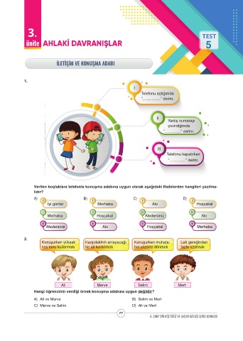 Verilen boşluklara telefonla konuşma adabına uygun olarak aşağıdaki ifadelerden hangileri yazılma-