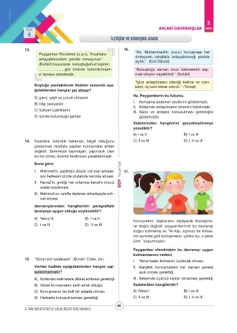 C) I ve III D) II ve III lar doğru değildir. peygamberimiz bu davranışı