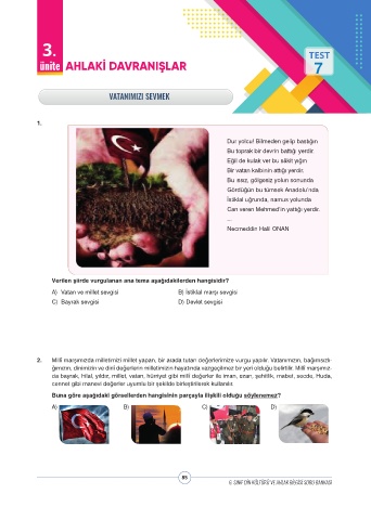 A) Vatan ve millet sevgisi B) İstiklal marşı sevgisi