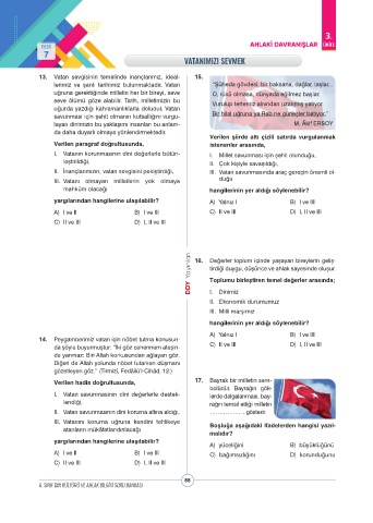 13. Vatan sevgisinin temelinde inançlarımız, ideal- 15.