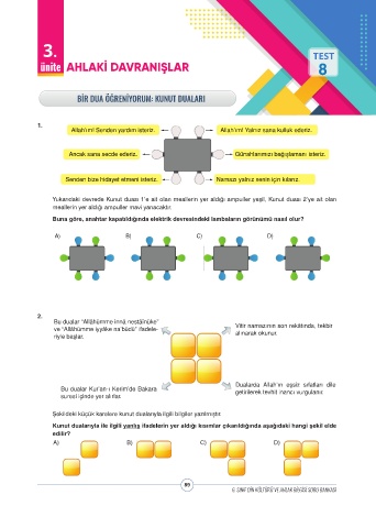 Yukarıdaki devrede Kunut duası 1’e ait olan meallerin yer aldığı ampuller yeşil, Kunut duası 2’ye ait olan