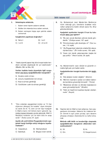 TEST AHLAKİ DAVRANIŞLAR ÜNİTE