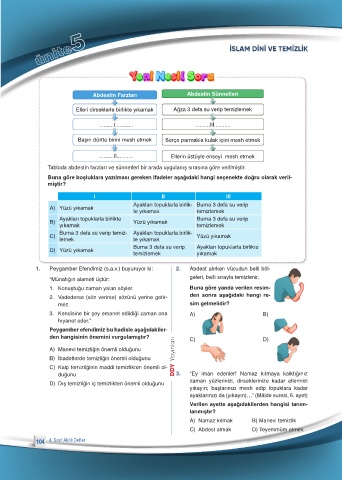 1. Peygamber Efendimiz (s.a.v.) buyuruyor ki: 2. Abdest alırken vücudun belli böl-
