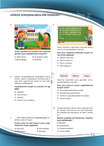 6. Günlük konuşmalarımızda kullandığımız birçok 9. Besmele Salavat Tekbir