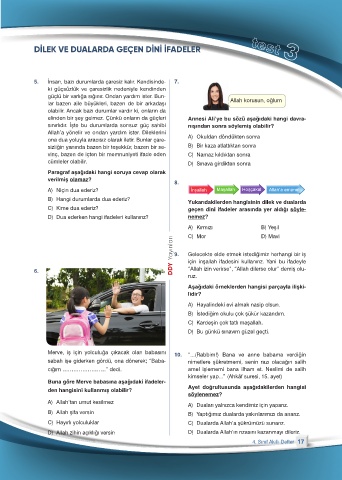Allah’a yönelir ve ondan yardım ister. Dileklerini A) Okuldan döndükten sonra