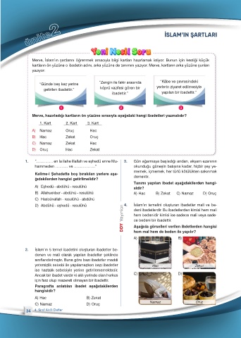 Merve, hazırladığı kartların ön yüzüne sırasıyla aşağıdaki hangi ibadetleri yazmalıdır?