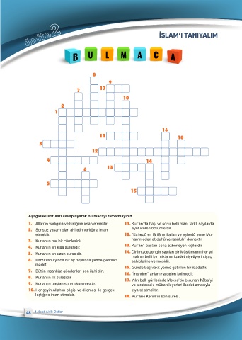 1. Allah’ın varlığına ve birliğine iman etmektir. 11. Kur’an’da başı ve sonu belli olan, farklı sayılarda