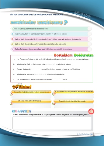 5 Salli ve Barik duaları başta namazların kade-i âhire (son oturuş) bölümünde okunur.