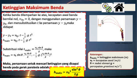 Maka, persamaan untuk mencari ketinggian yang dicapai = =
