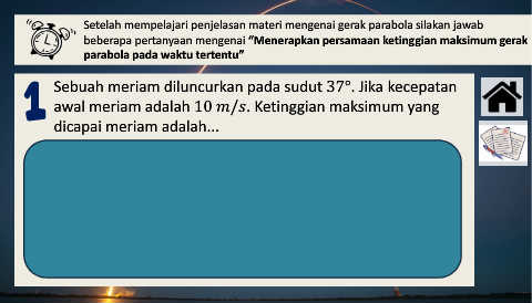 Setelah mempelajari penjelasan materi mengenai gerak parabola silakan jawab