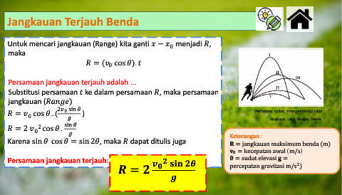 Persamaan jangkauan terjauh: = sudut elevasi = 2
