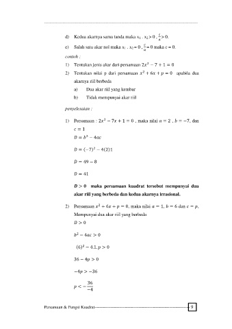 d) Kedua akarnya sama tanda maka x 1 . x 2 > 0 , > 0.