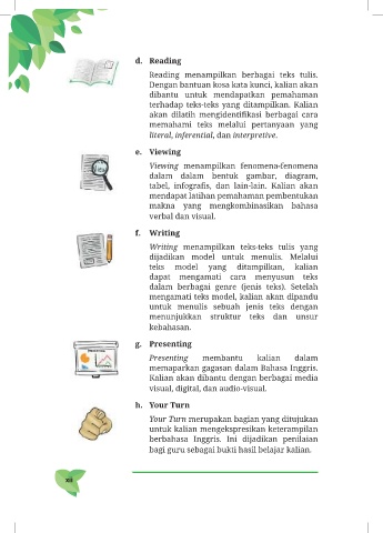 Reading menampilkan berbagai teks tulis.