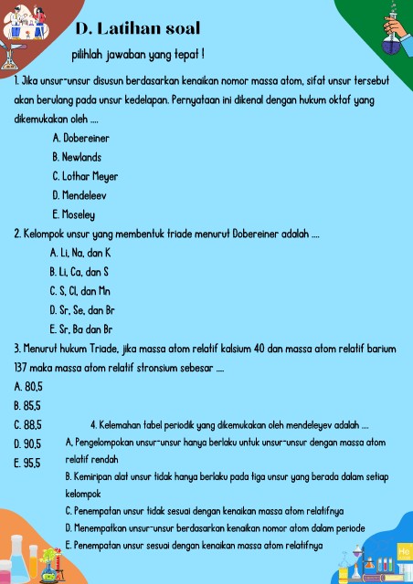 C. 88,5 4. Kelemahan tabel periodik yang dikemukakan oleh mendeleyev adalah ....