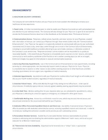 Enhancements”). Your Physician has agreed to be generally available to communicate with you (or your authorized