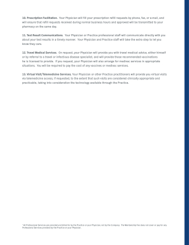1 All Professional Services are provided and billed for by the Practice or your Physician, not by the Company. The Membership Fee does not cover or pay for any Professional Services provided by the Practice or your Physician.