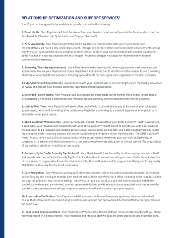 1. Panel Limits. Your Physician will limit the size of their membership panel and will provide the Services described on this Schedule (“Relationship Optimization and Support Services”).