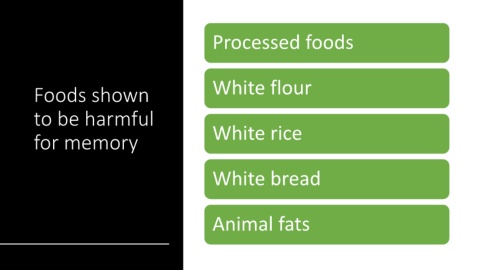 Processed foods Foods shown White flour to be harmful for memory White rice White bread Animal fats