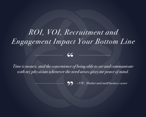 ROI, VOI, Recruitment and Engagement Impact Your Bottom Line “ Time is money, and the convenience of being able to see and communicate with my physician whenever the need arises gives me peace of mind. – P.W., Member and small business owner “