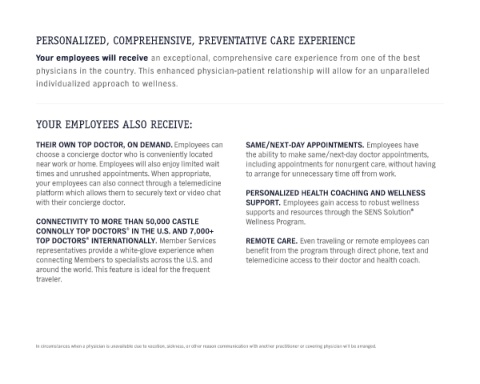 with their concierge doctor. SUPPORT. Employees gain access to robust wellness