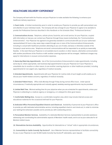 The Company will work with the Practice and your Physician to make available the following, to enhance your healthcare delivery experience: