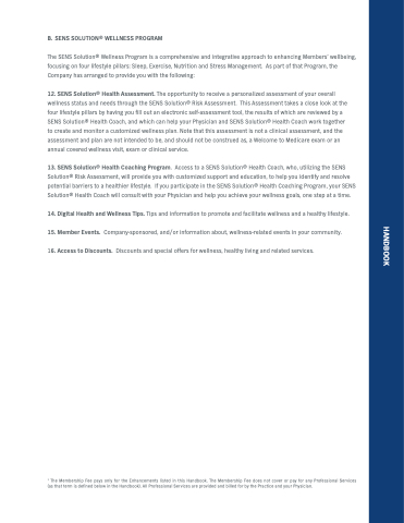 1 The Membership Fee pays only for the Enhancements listed in this Handbook. The Membership Fee does not cover or pay for any Professional Services (as that term is defined below in the Handbook). All Professional Services are provided and billed for by the Practice and your Physician.