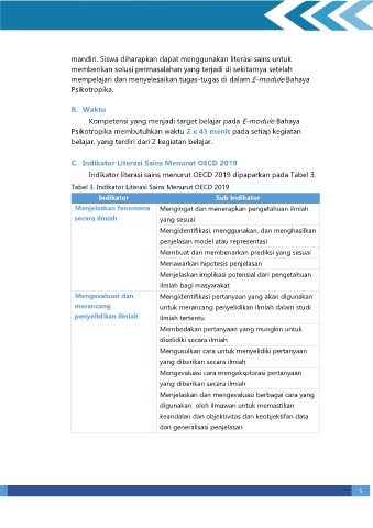 Indikator literasi sains menurut OECD 2019 dipaparkan pada Tabel 3.